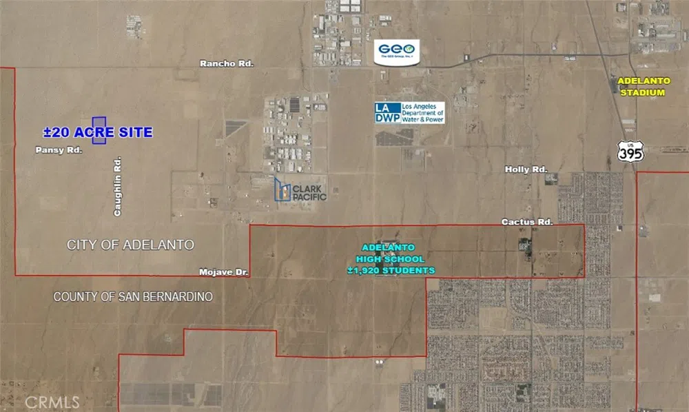±20-acre site on Pansy Rd., west of Caughlin Rd., in the City of Adelanto. Currently zoned Open Space (OS), this parcel may allow for a zone change as it sits just outside of the Light Manufacturing Cannabis Only zone. Buyer to verify all zoning information and availability of utilities with the applicable agencies.
